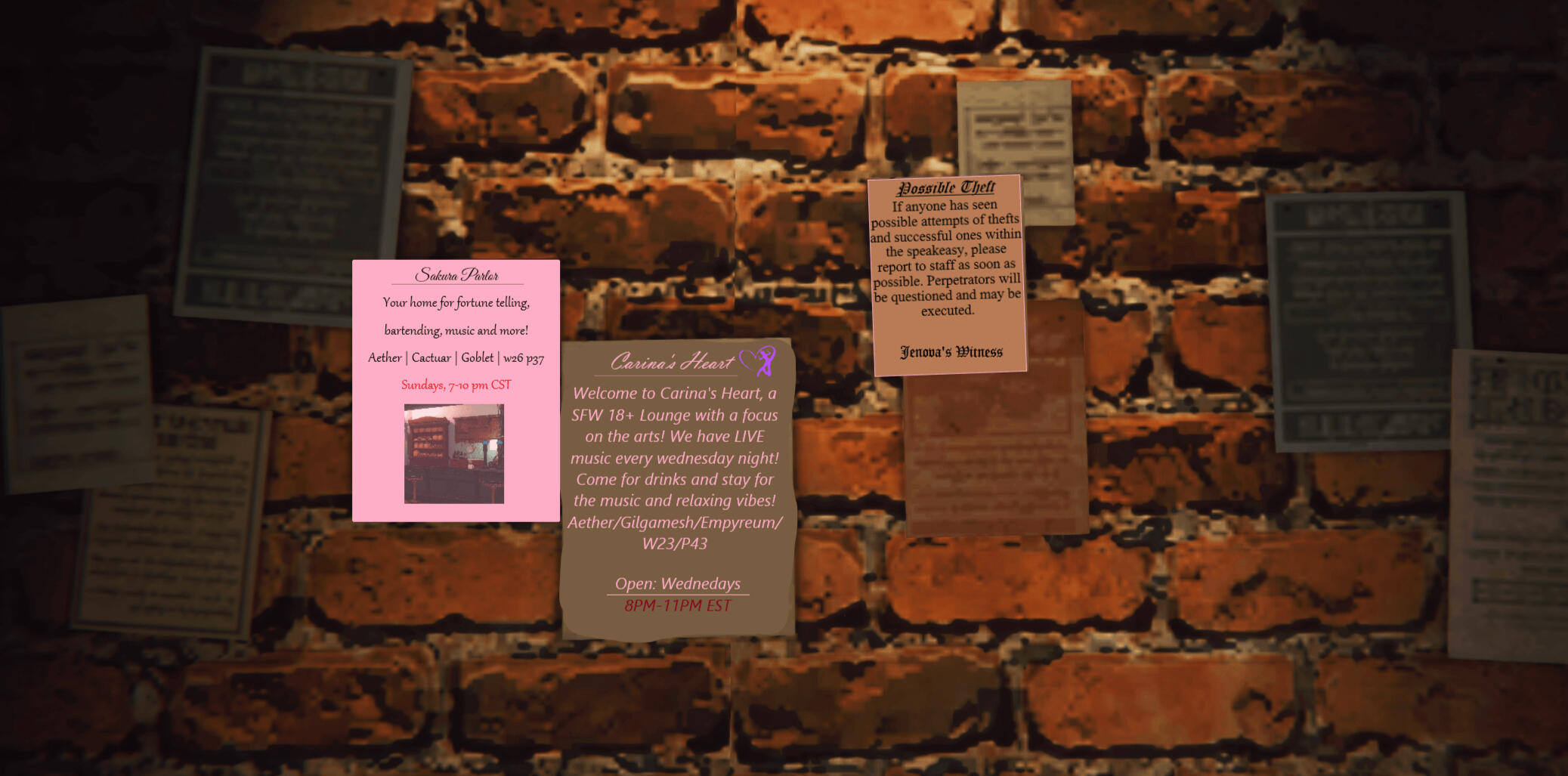 Have a drink, or a meal and stay for the chatter~The Witness is not explicitly NSFW but contains adult topics and profanity.Aether | Jenova | Mists | Ward 7 | Plot 52Local Wifi:
